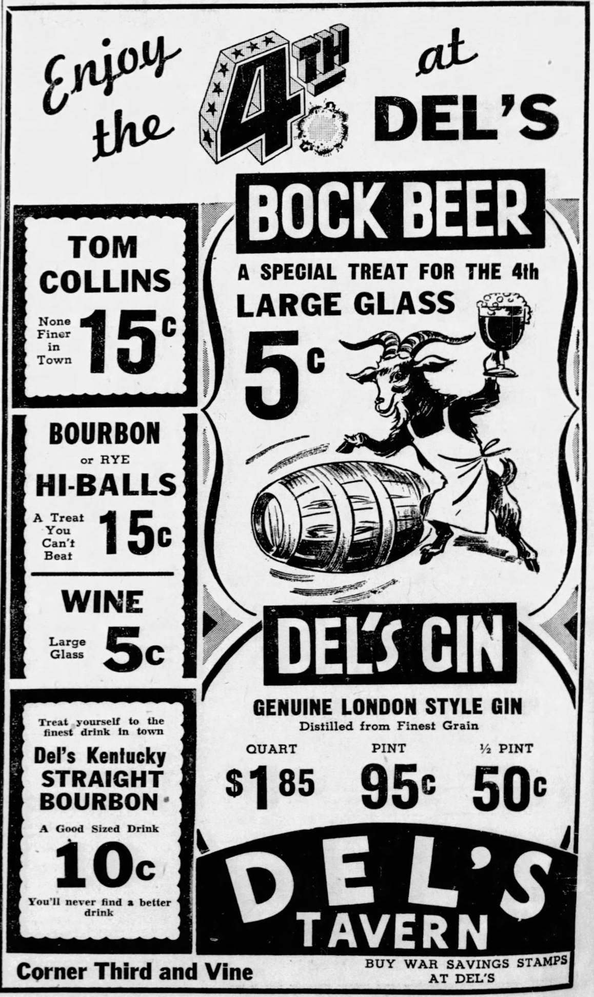 Saturday’s ad is for Bock Beer at Del’s Tavern, which was published in July 1942. This one was for an unnamed bock, though itvwas probably a local one. The iconic La Crosse bar was originally founded in 1933. This ad ran in The La Crosse Tribune, also of La Crosse, Wisconsin.