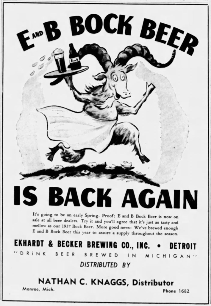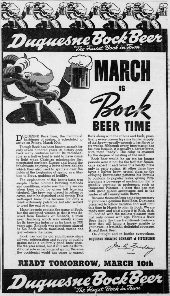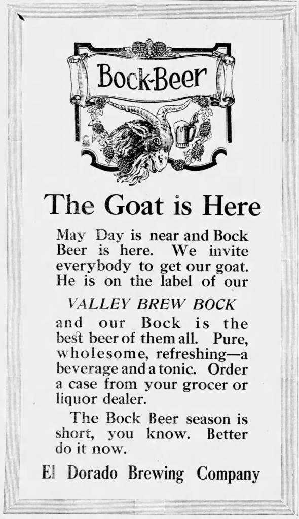 Two years ago I decided to concentrate on Bock ads for awhile. Bock, of course, may have originated in Germany, in the town of Einbeck. Because many 19th century American breweries were founded by German immigrants, they offered a bock at certain times of the year, be it Spring, Easter, Lent, Christmas, or what have you. In a sense they were some of the first seasonal beers. “The style was later adopted in Bavaria by Munich brewers in the 17th century. Due to their Bavarian accent, citizens of Munich pronounced ‘Einbeck’ as ‘ein Bock’ (a billy goat), and thus the beer became known as ‘Bock.’ A goat often appears on bottle labels.” And presumably because they were special releases, many breweries went all out promoting them with beautiful artwork on posters and other advertising. With Spring approaching, there are so many great examples that I’m going to post two a day for a few months.