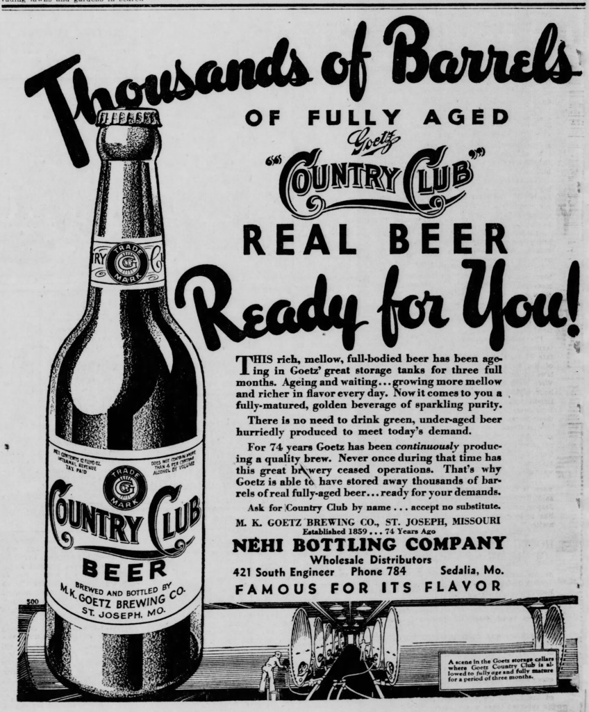 There are actually two versions I found of the same ad, and I’m willing to bet good money I could find more if I really looked. It appears they created a generic ad that any distributor could add their territory and specific information in different markets. There was a white oval for the town’s name and open space at the bottom where you could list contact information for the distributor from whom to buy their beer. The first one was for Toledo, Ohio and the ad ran in the Toledo Blade, of Toledo, Ohio. The second one was for Monroe, Wisconsin and the ad ran in the Monroe Evening News, of Monroe, Wisconsin.