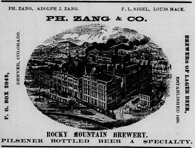 As for the brewery, Philip Zang bought into it around 1868 and eventually took it over, renaming it the Philip Zang Brewery in 1870, though they continued to use the Rocky Mountain name in the trade. They closed during prohibition, of course, but only lasted one year afterwards before closing for good in 1934.