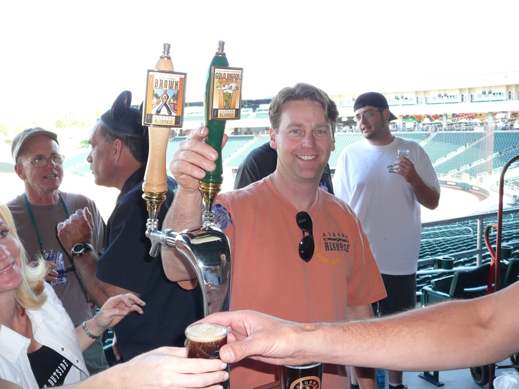 Brian pouring his beer at the Raley Field Beerfest in 2007.