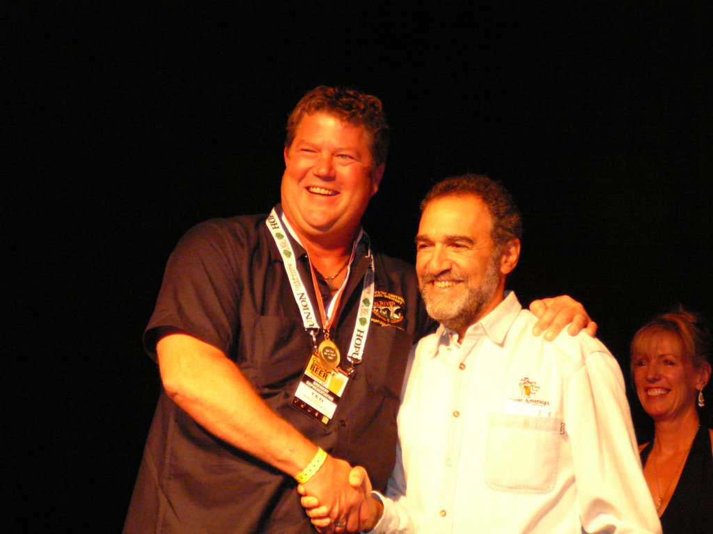 Picking up an award from Charlie Papazian at the 2006 Great American Beer Festival.