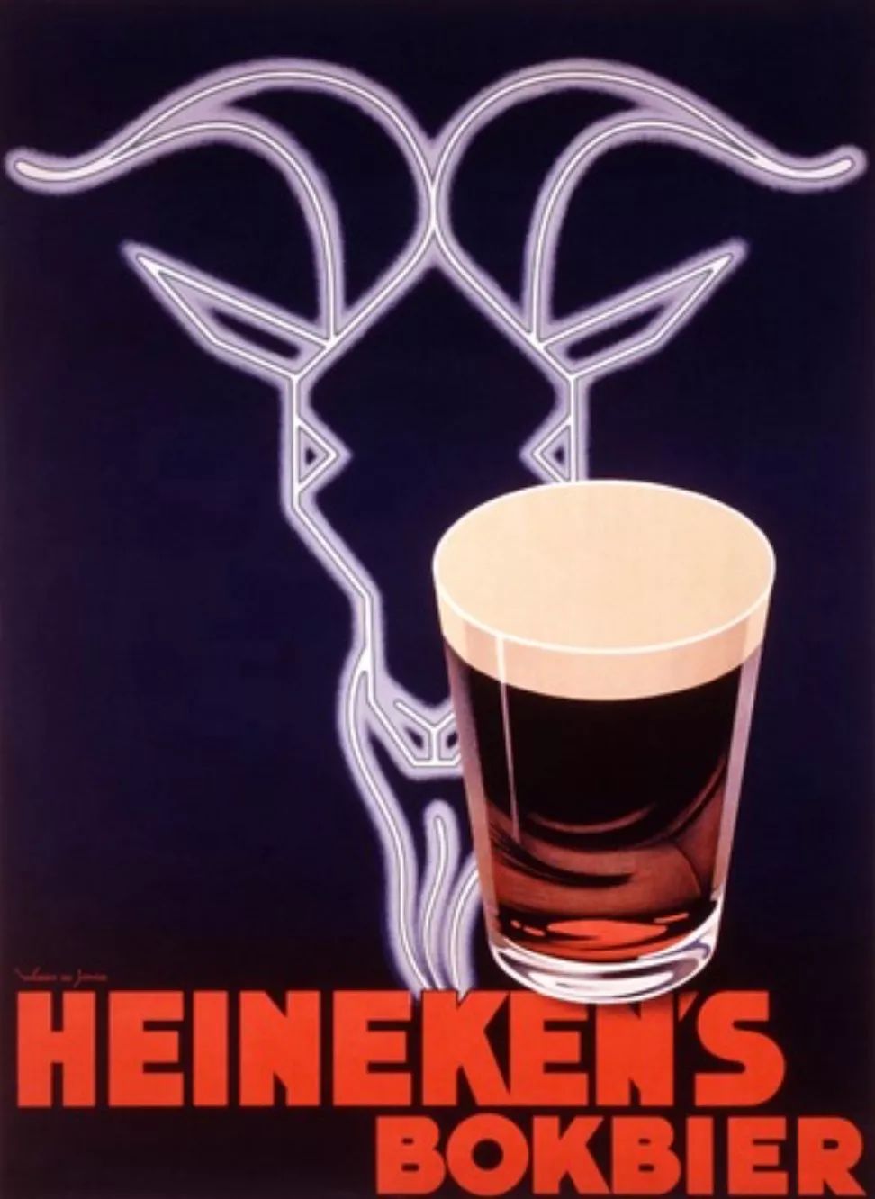 Saturday’s ad is for Heineken, from the 1950s. From the late 1800s until the 1980s, poster art really came into its own, and in Europe a lot of really cool posters, many of them for breweries, were produced. I’ve been posting vintage European posters all last year and will continue to do so in 2020. This one was created for Heineken, which was founded as De Hooiberg in 1592 in Amsterdam, in The Netherlands. The Heineken family bought the brewery and renamed it in 1864. I don’t know who created this poster, and unfortunately I could only find a small image of it.