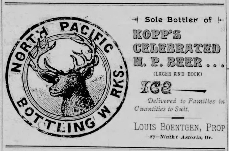 Friday’s ad is for Kopp’s Celebrated N.P. Bock, which was published on October 10, 1898. This one was for the North Pacific Brewery of Astoria, Oregon, which was originally founded in 1884, and also used the founder’s name, John Kopp, until 1902. This ad ran in The Astoria Evening Budget, also from Astoria, Oregon.