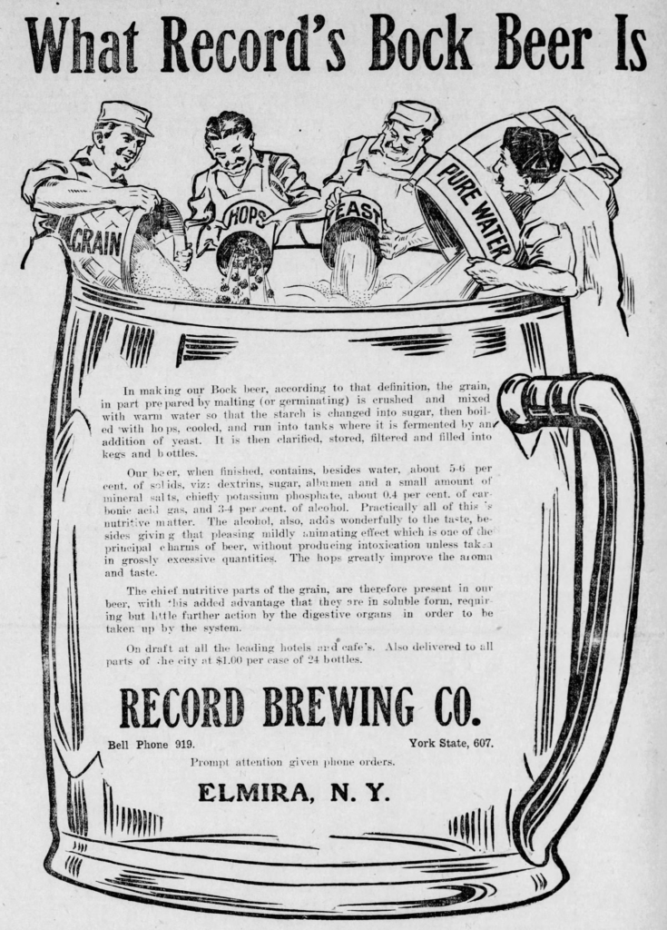 Friday’s second ad is for Bushkill Bock Beer, which was published on February 27, 1912. This one was for Record Brewing Co. of Elmira, New York and was founded in 1902. This ad ran in The Elmira Star Gazette, of Elmira, New York.