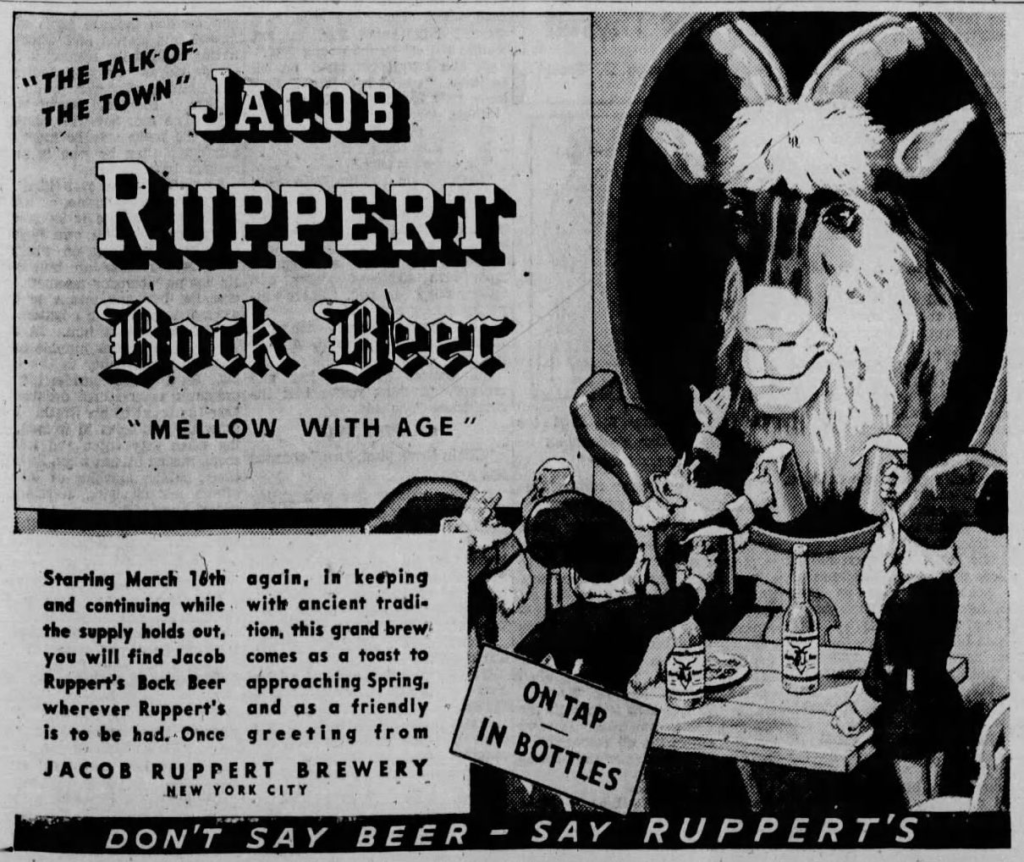 Monday’s second ad is for Braumeister Bock Beer, which was published on March 2, 1936. This ad was for the Jacob Ruppert Brewery of New York, New York, which was originally founded in 1856 by Matthias Haffen as the Haffen Brewery until 1914 when Ruppert’s father bought it a year before he died, leaving it to Jacob, who changed the name. This ad ran in The Brooklyn Eagle, of Brooklyn, New York.