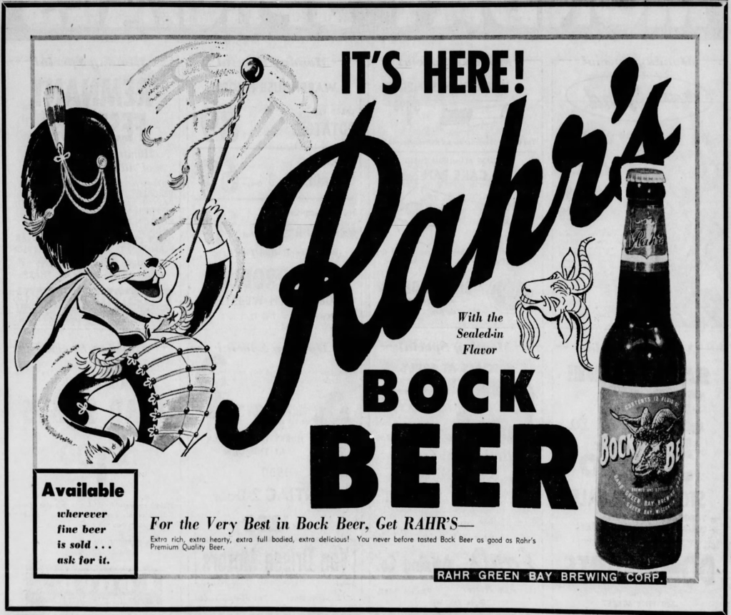 Monday’s ad is for Rahr’s Bock Beer, which was published on February 9, 1957. This one was for Rahr Green Bay Brewing Corp., of Green Bay, Wisconsin and was founded by Henry Rahr in 1864. This ad ran in The Green Bay Press Gazette, of Green Bay, Wisconsin.