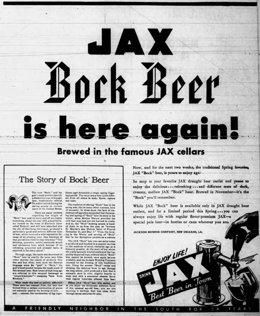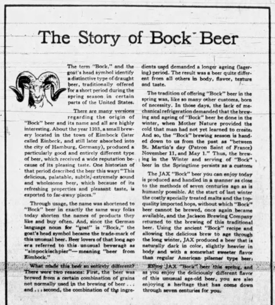 • Beer In Ads #5208: Jax Bock Beer Is Here Again! February 18, 2026
