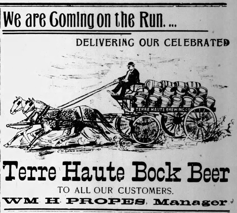 Wednesday’s ad is for Terre Haute Bock Beer, which was published on April 22, 1899. This ad was for the Terre Haute Brewing Co., of Terre Haute, Indiana and was founded in 1855. This ad ran in The Vincennes Sun Commercial, of Vincennes, Indiana.