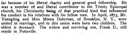 And here’s a biography of Frederick G. from the History of Schuylkill County, Pennsylvania, published in 1907.