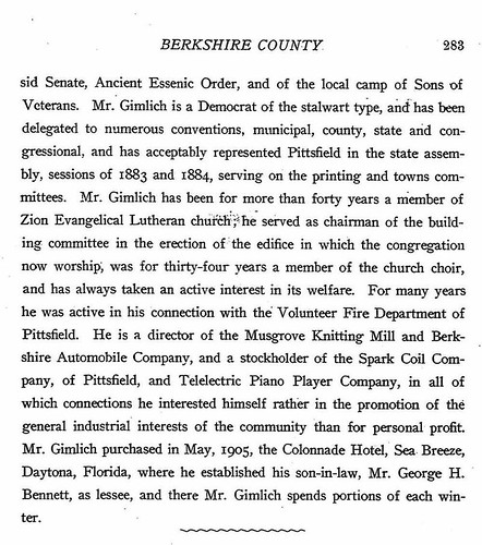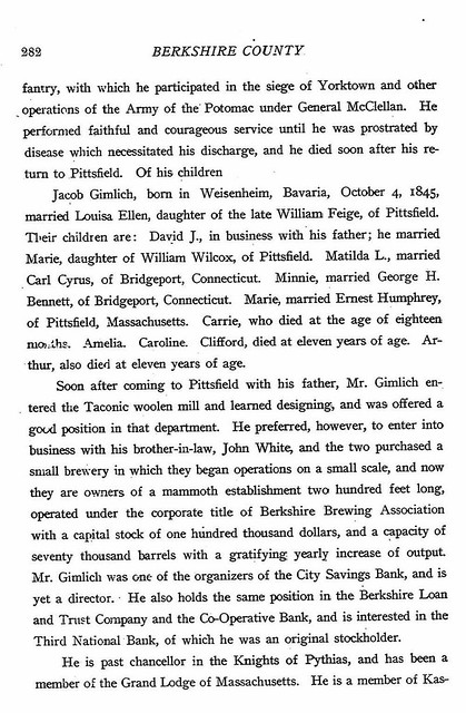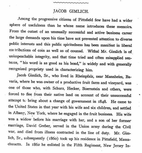 Here’s a history of Gimlich, from “Historic homes and institutions and genealogical and personal memoirs of Berkshire County, Massachusetts,” published in 1906: