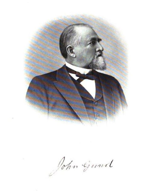 John Gund was born in Schwetzingen, Germany in 1830. He was the second of eight children. After finishing this education at the common schools he began an apprenticeship working at a brewery in the winter.