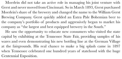 Here’s more of Gerst’s story from the early days, from Nashville Brewing (Acadia Publishing, 2006), by Scott R. Mertie: