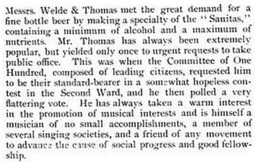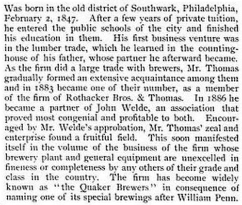 Here’s Thomas’ obituary from the American Brewers Review in 1899: