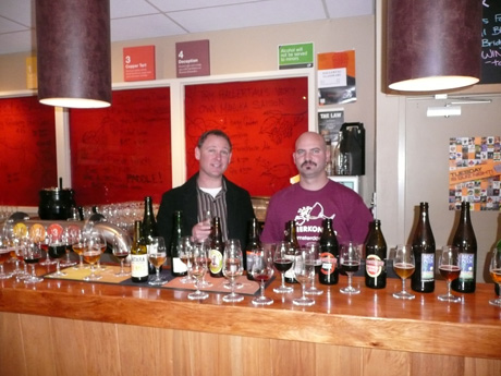 Luke in New Zealand at Hallertau Brewbar & Restaurant with owner/brewer Stephen Plowman.