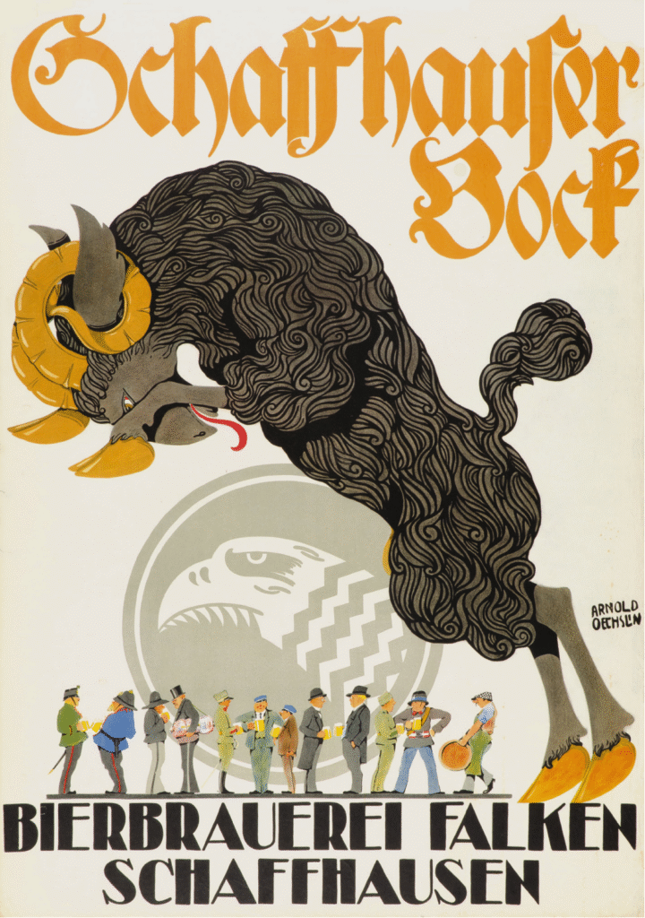 Last year I decided to concentrate on Bock ads. Bock, of course, may have originated in Germany, in the town of Einbeck. Because many 19th century American breweries were founded by German immigrants, they offered a bock at certain times of the year, be it Spring, Easter, Lent, Christmas, or what have you. In a sense they were some of the first seasonal beers. “The style was later adopted in Bavaria by Munich brewers in the 17th century. Due to their Bavarian accent, citizens of Munich pronounced ‘Einbeck’ as ‘ein Bock’ (a billy goat), and thus the beer became known as ‘Bock.’ A goat often appears on bottle labels.” And presumably because they were special releases, many breweries went all out promoting them with beautiful artwork on posters and other advertising.