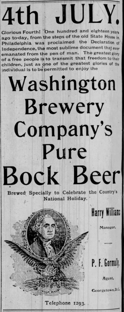 Tuesday’s ad is for Consumers’ Bock Beer, which was published on September 30, 1900, six days before it was scheduled to be released on October 6. This one was for the Consumers’ Brewing Co. of Norfolk, Virginia, which was originally founded in 1896. At least I think so, since that’s the closest one to D.C. But there were also breweries called “Consumers'” located in Rhode Island, Ohio, Pennsylvania and New York. This ad ran in The Washington Post, from Washington, D.C.