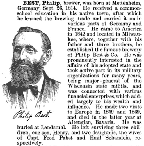 Immigrant Entrepreneurship has a lengthy article about the Bests, centered around Frederick Pabst, but with background that includes Phillip and the rest of the Best family: