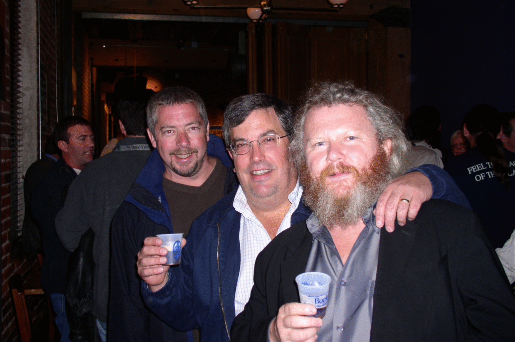 Ray in front of the New Orleans d.b.a. with Garrett Oliver in 2003.