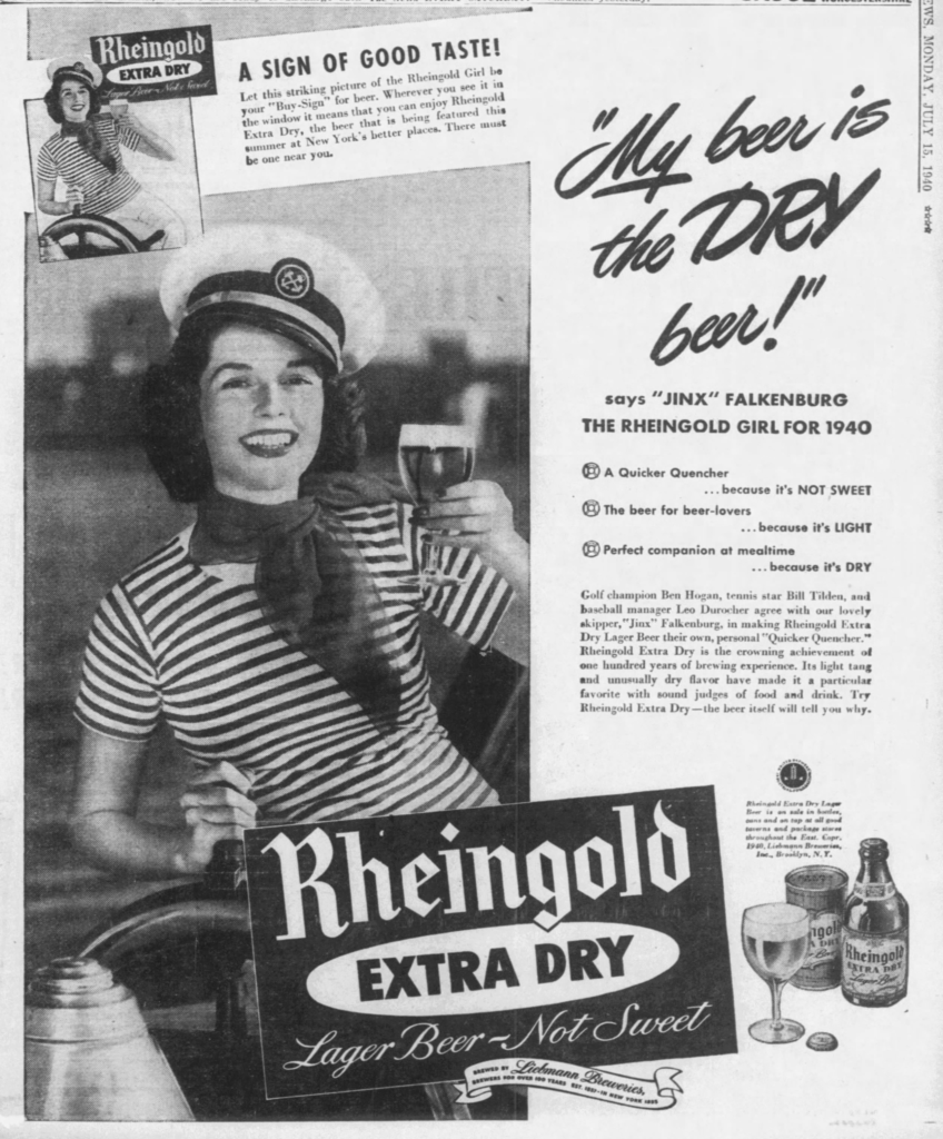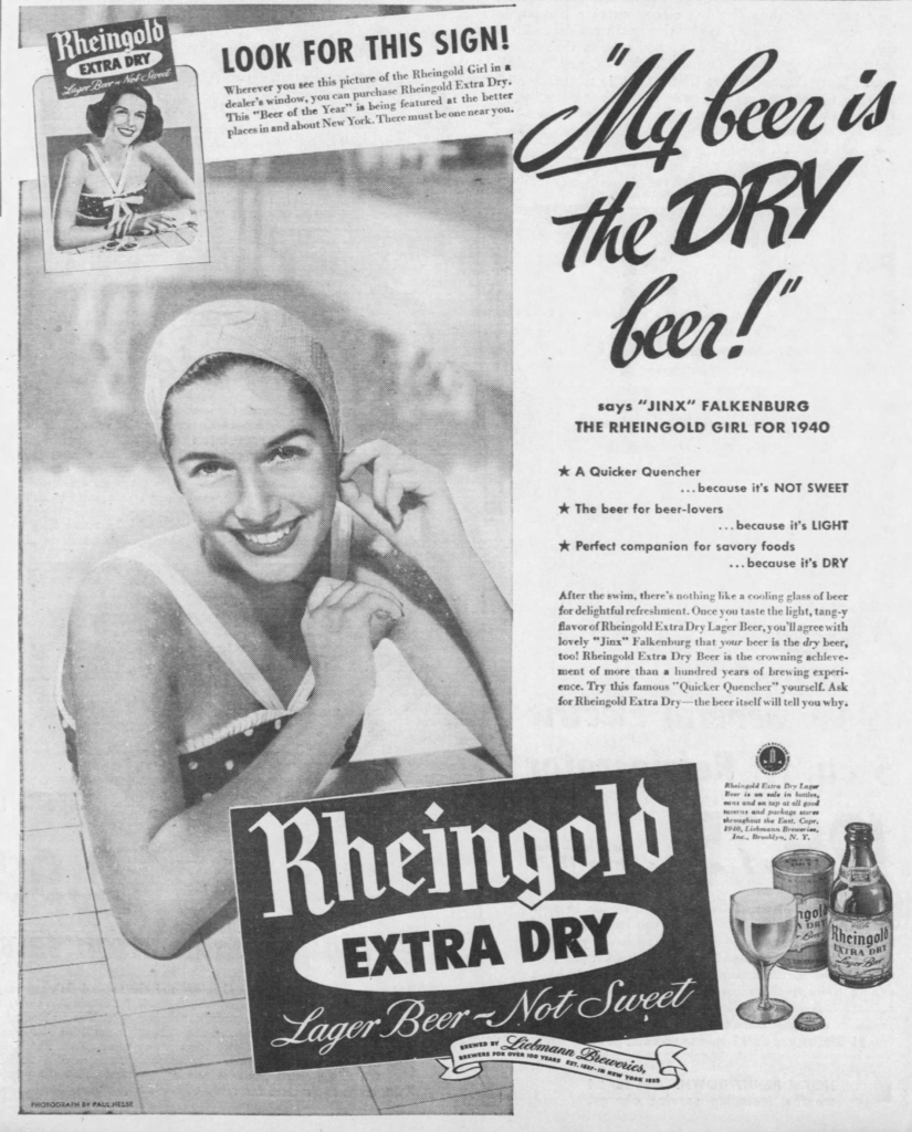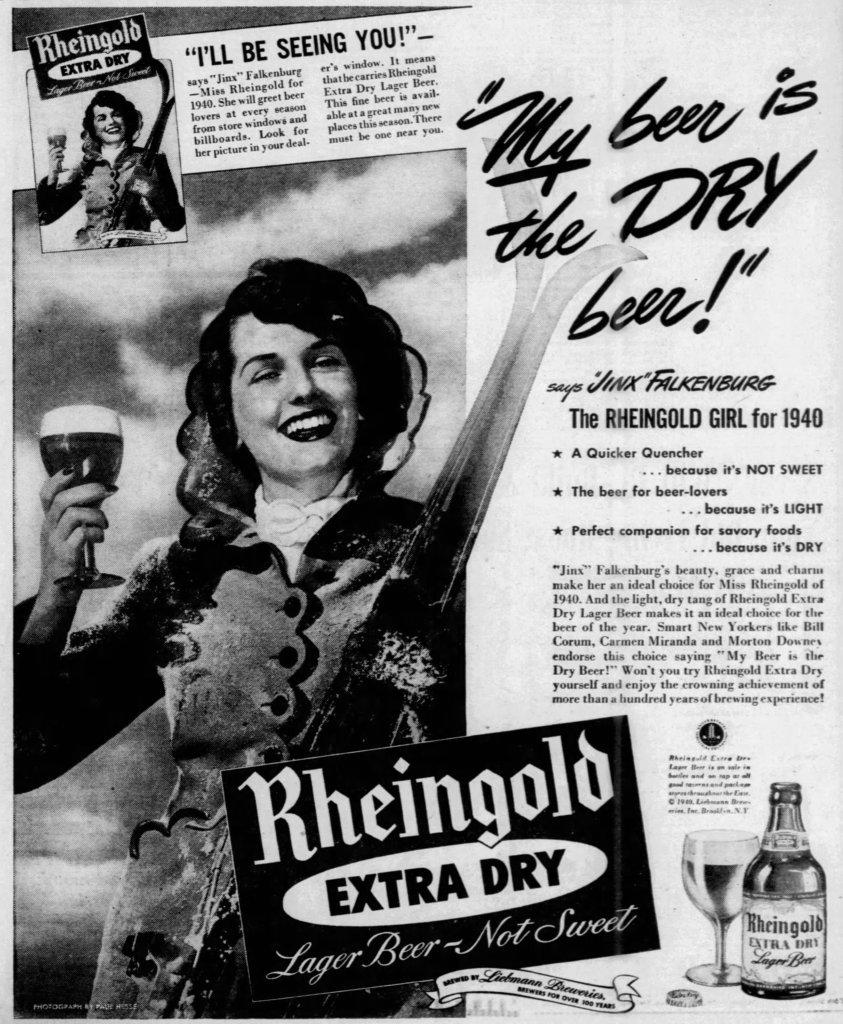 And this must have been one of her first ads for Rheingold, as it’s from January of 1940: